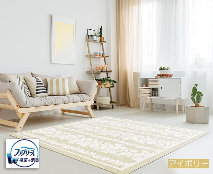 『ファブリーズラグ フローナ』は、185×240cmのゆったりとしたサイズで、リビングや寝室に心地よい雰囲気をもたらします。ポリプロピレンとポリエステルを組み合わせた高品質な素材を使用し、柔らかい肌触りと高い耐久性を実現。生活の様々なシーンで、快適さをしっかりとサポートします。