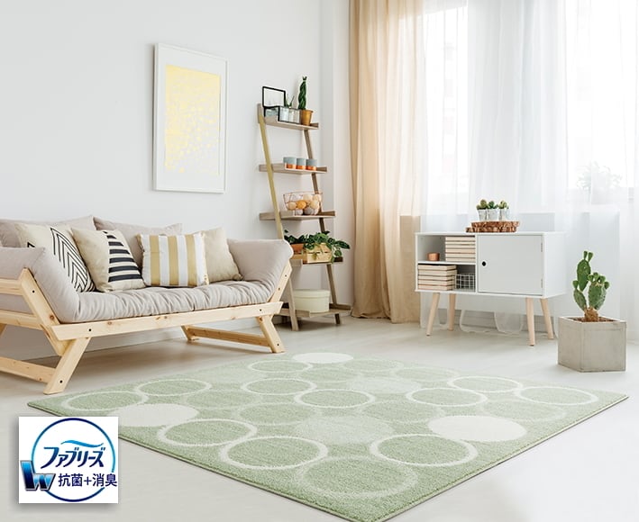 『ファブリーズラグ キルナ』は、190×240cmの広々としたサイズで、リビングやダイニングなどのさまざまなスペースにぴったり収まります。高品質なポリエステル素材を使用し、快適な肌触りを実現。毎日の生活をより心地よく演出します。