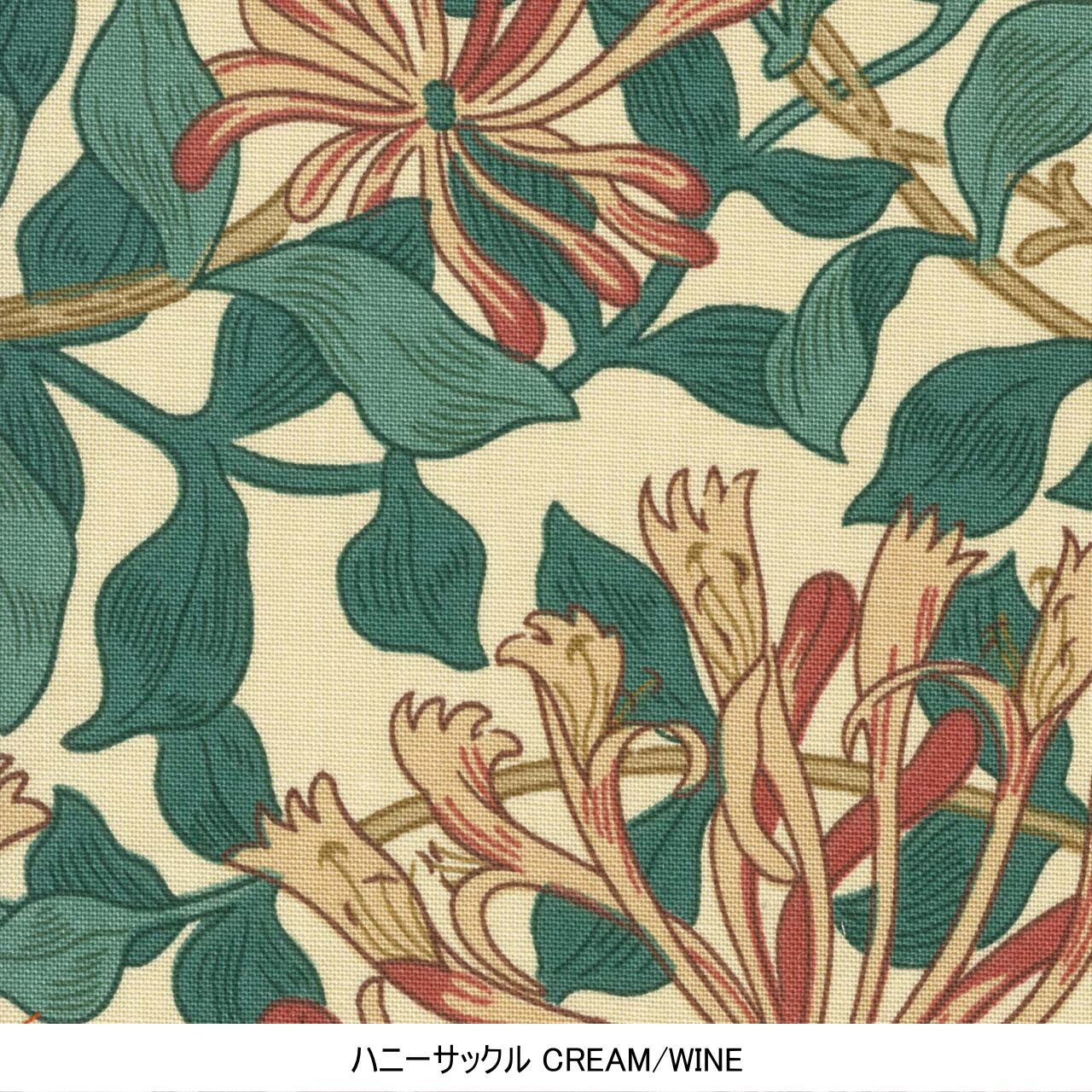 1883年ウィリアム・モリスの娘であるメイ・モリスによって壁紙としてデザインされました。力強く生長するスイカズラを表した気持ちの良い柄を、綿平織地のファブリックにプリントしました。