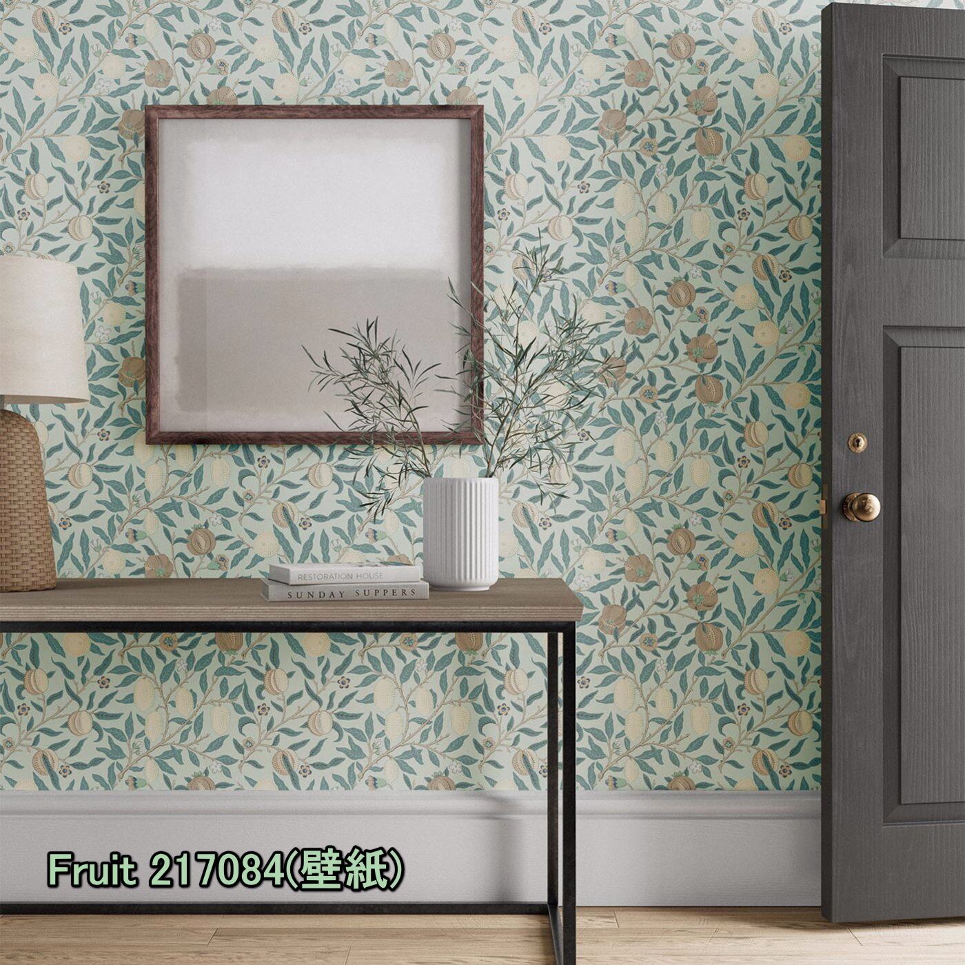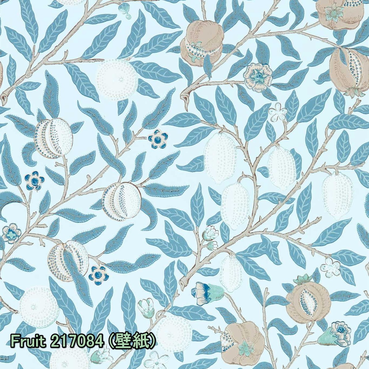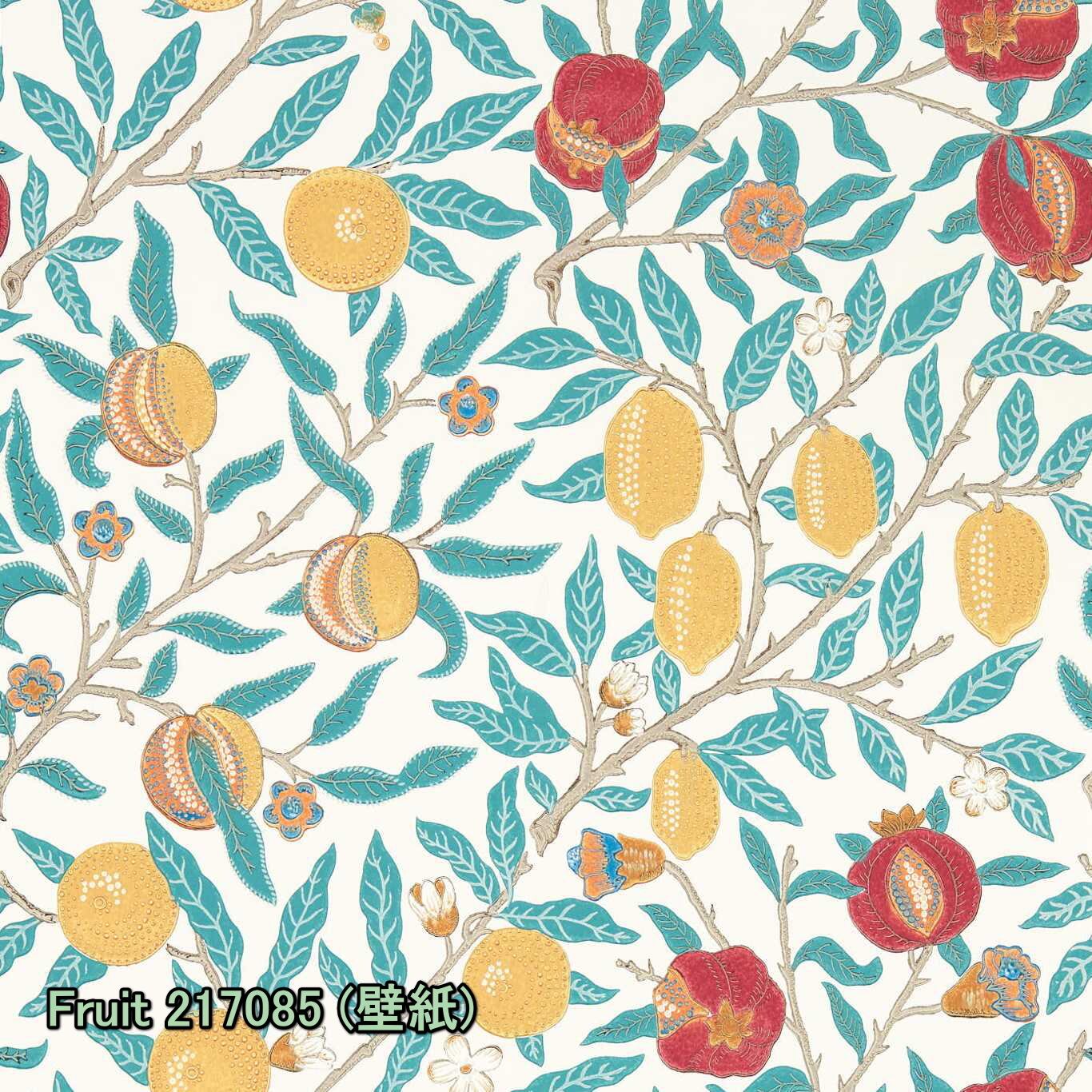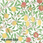 1864年発表のモリスの初期三大壁紙デザインのひとつ。木の枝からぶら下がる熟したザクロといった果実や流れるように伸びゆく枝がデザインに深みを与えています。オリジナルのFruitは地に模様が入っていますが、SIMPLY MORRISコレクションでは地模様をなくし、よりクリーンでフレッシュな印象に仕上げています。